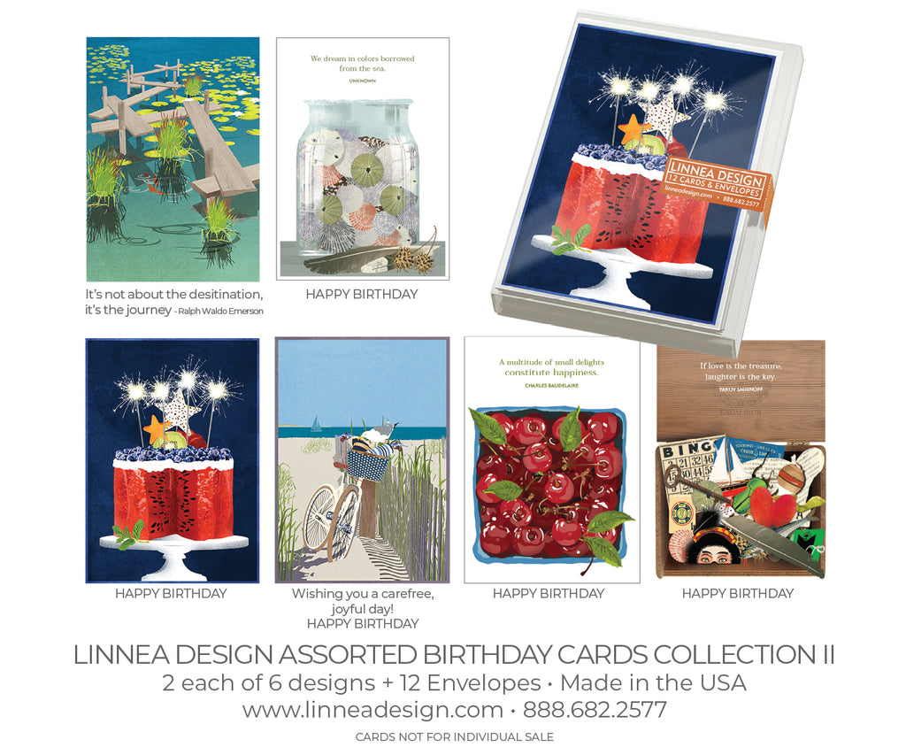 We are excited once again to offer sets of cards full of original artwork by Johanna Riley and a retrospective set of Linnea Riley’s artwork too. Greeting cards and Holiday cards from Linnea Design are always certain to make someone feel very special indeed. Made in the USA on recycled paper.